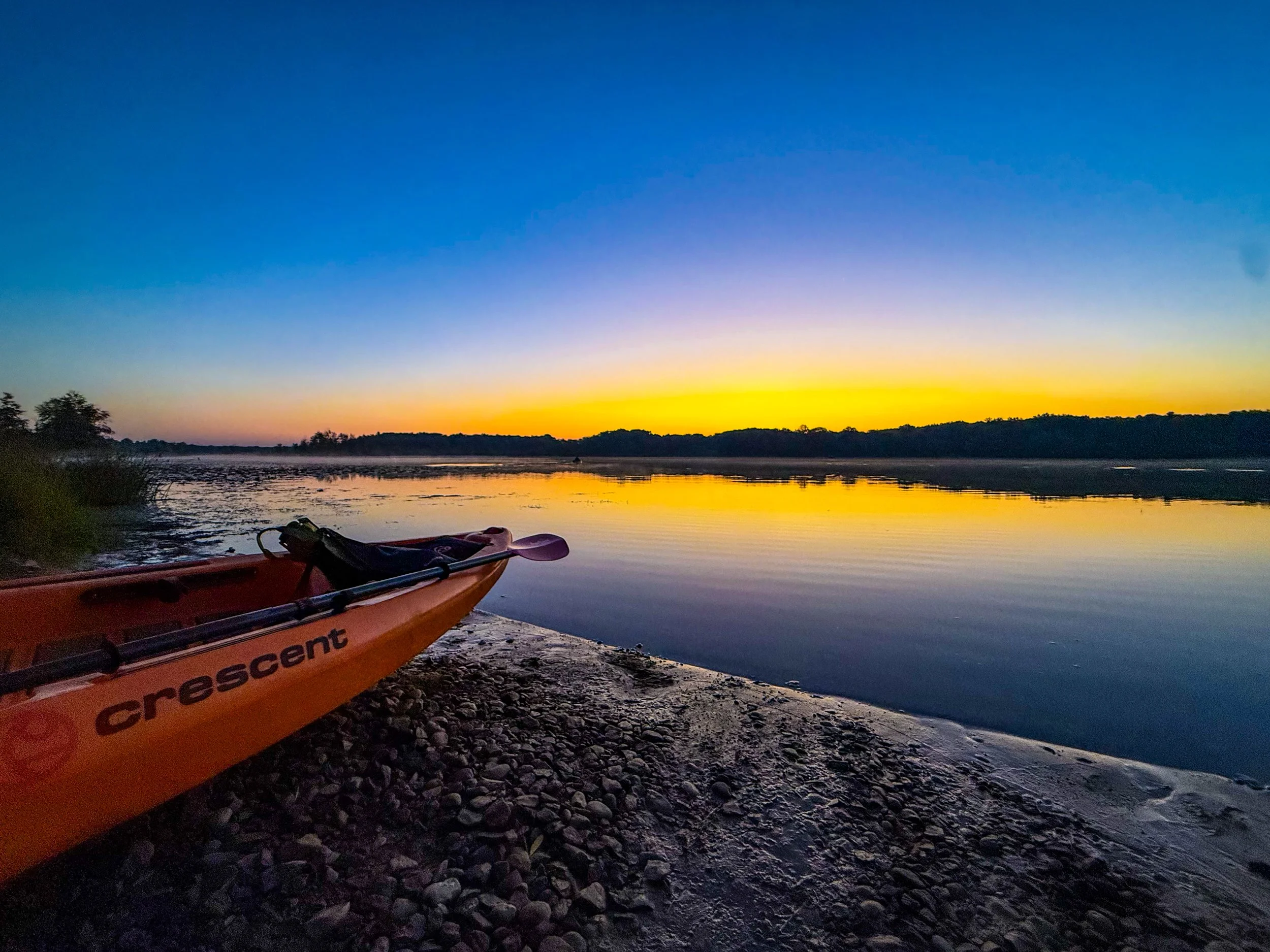 At sun the dark cobalt shades caress the reds and oranges to sleep.